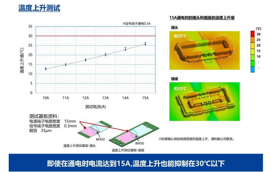 特點 1 兼顧供電能力和小型化的設(shè)計 - 額定電流:支持電源端子15A、信號端子0.3A - 嵌合高度:0.6mm、縱深:2.0mm 2 通過全包覆構(gòu)造,確保高牢固性 3 使接觸電阻最小化,節(jié)省電力 4 實現(xiàn)小型,高抜出力 5 互相夾緊型多觸點構(gòu)造,確保高接觸可靠性 有助于小型化&大電流化